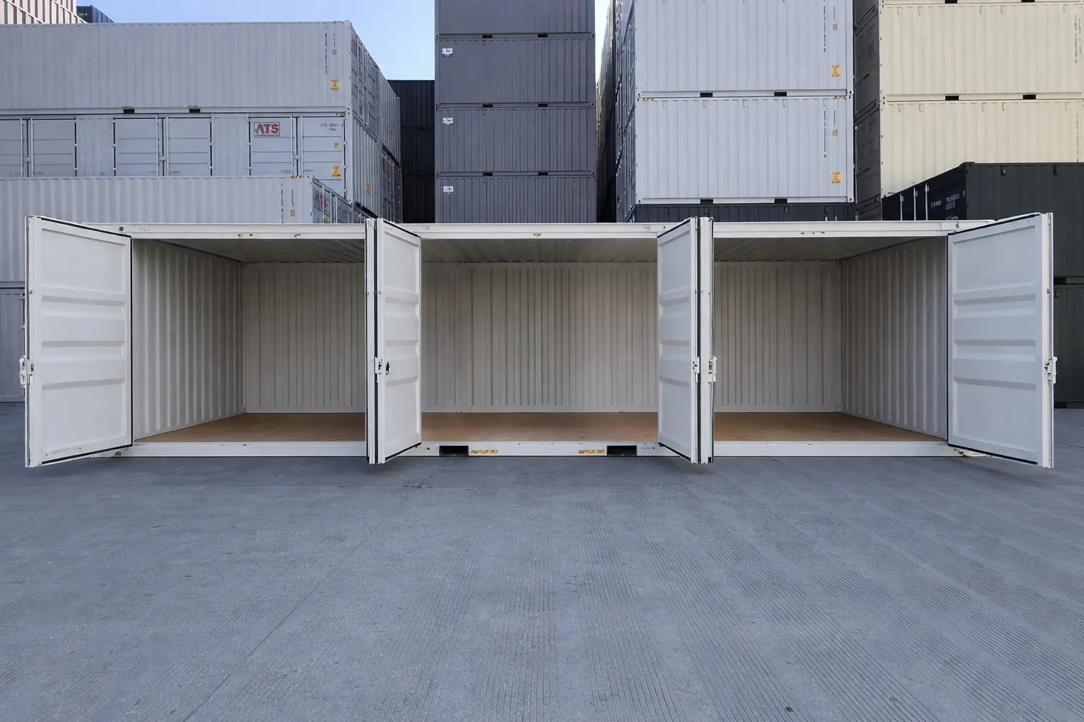 Contrairement aux conteneurs à ouverture latérale traditionnels équipés de portes de 8 pieds, cette configuration à triple porte offre trois ouvertures complètes de 10 pieds, procurant 2 pieds de dégagement supplémentaire par porte. Cet accès élargi améliore considérablement la maniabilité des chariots élévateurs et rend le chargement et le déchargement plus rapides et plus fluides.